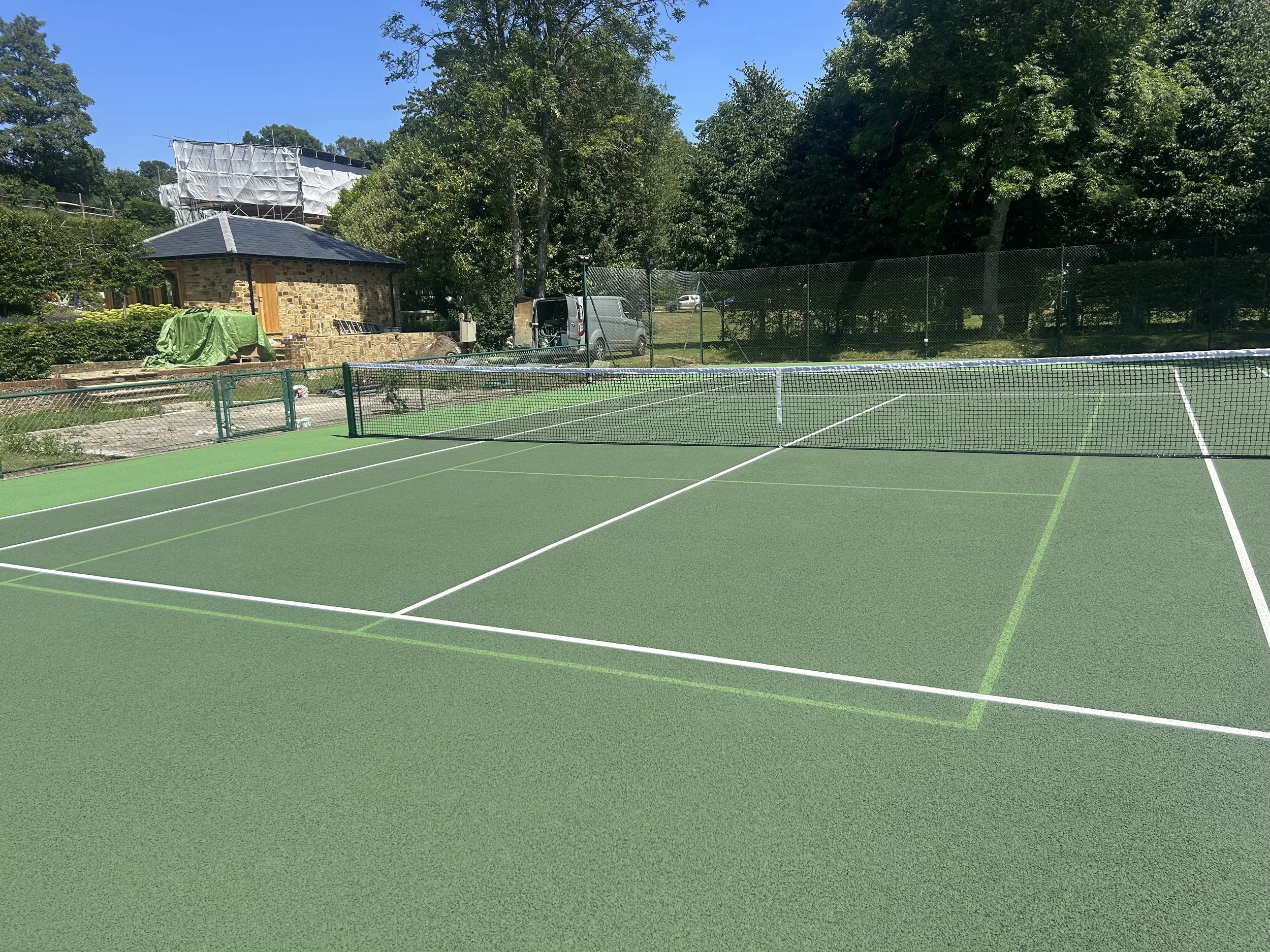 We are regularly applying Pickleball line markings onto tennis courts. Often the line paint colour is to complement the existing court colours so as not to stand out too much.